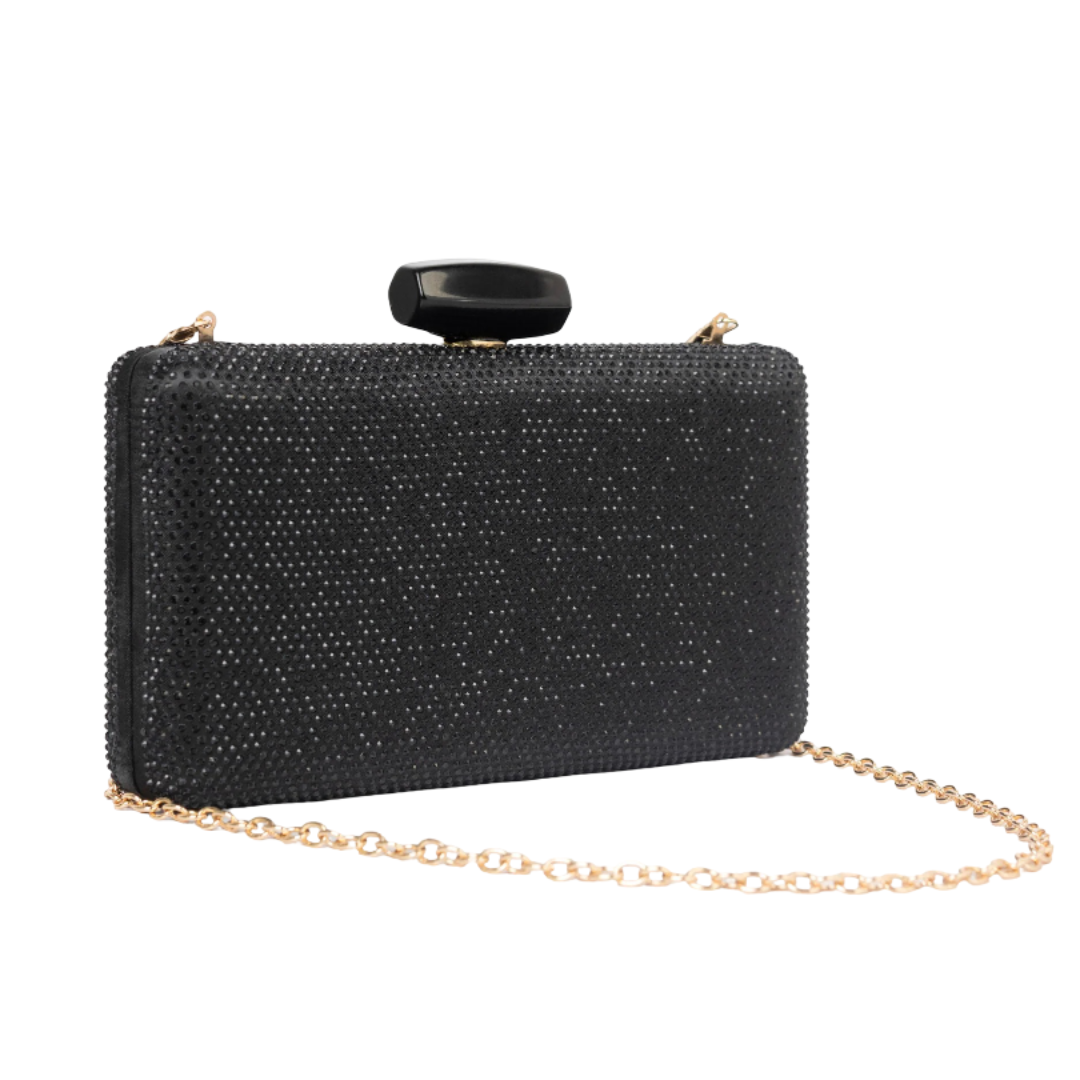 Be the first to review “Black Glittered Silk Clutch with Metallic Chain” Cancel reply